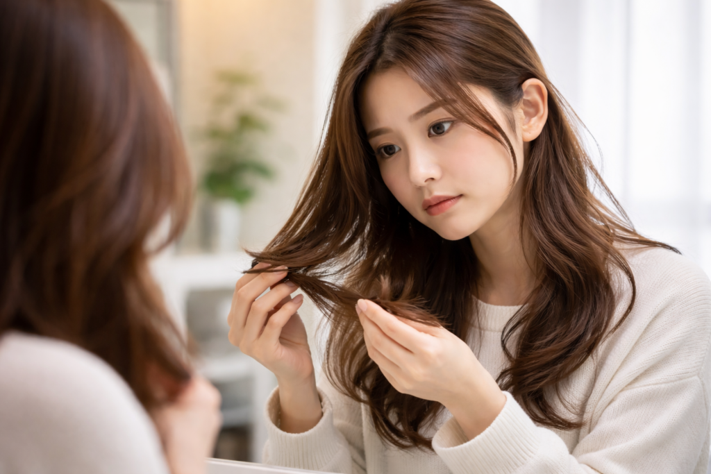 髪のダメージという言葉は便利ですが、実際には「ある・ない」で区切れるものではありません。カラーやパーマの履歴、熱の使用頻度、摩擦の積み重ねなどが影響し、緩やかなグラデーションとして現れます。そのため、同じダメージレベルだと認識していても、実際の仕上がりの感じ方には個人差が生じます。