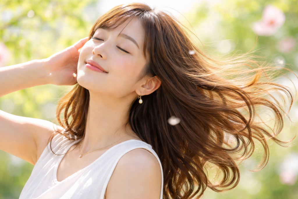 髪に香りをまとわせる場合、周囲に強く印象づけるというよりも、自分自身がふと感じるための香りになることが多くなります。髪が揺れた瞬間や、顔周りにふわりと漂う香りに気づくのは、まず自分自身です。そのさりげなさが、香りを「見せる」ものから「寄り添う」ものへと変えていきます。