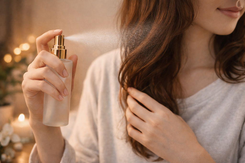 近すぎないからこそ、香りに疲れにくく、気分や体調に左右されにくいと感じる人もいます。香りをコントロールするというより、自然に委ねる。その姿勢が、ヘアミストとの付き合い方を軽やかにします。
