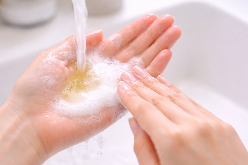 クレンジングオイルの大きな特徴のひとつが、水を加えることで白く変化する乳化の工程です。この乳化がスムーズに起こるかどうかは、配合されている界面活性剤の設計によって左右されます。乳化しやすい処方は、洗い流しの際にオイル感が残りにくく、肌表面に余分な感触を残しにくい傾向があります。一方で、乳化が不十分だと、すすぎに時間がかかり、結果的に摩擦が増える原因になることもあります。